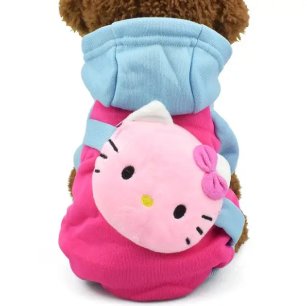 Кофта для собак та котів РЮКЗАЧОК розмір XS довжина спини 25 см обхват грудей 32 см блакитно-рожева з сумкою