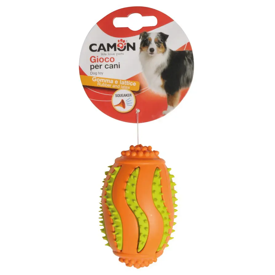 Іграшка для собак Camon м'яч для регбі гумовий з латексною вставкою, пищалкою набитий ватою 9 см (AH232)