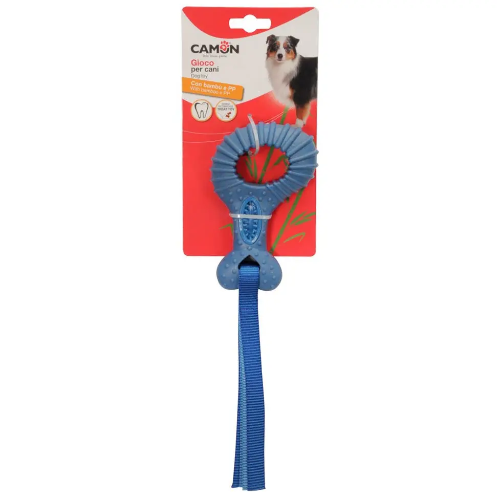 Іграшка для собак Camon кісточка з бамбука та стрічками для ласощів 15 см в асортименті