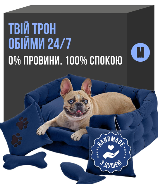 Лежак для собак лежанка для собаки Doggy Affairs ліжко ручної роботи спальне місце М 73х53 см синій (без подушок)