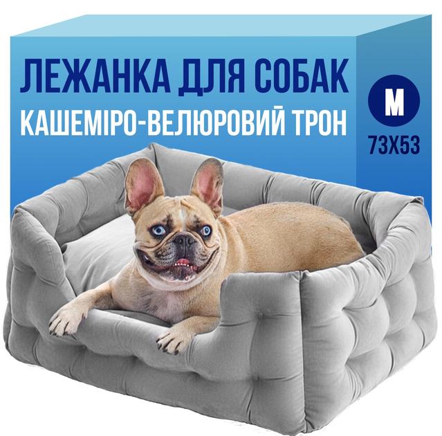 Лежак для собак лежанка для собаки Doggy Affairs ліжко ручної роботи спальне місце М 73х53 см сірий + іграшки в комплекті
