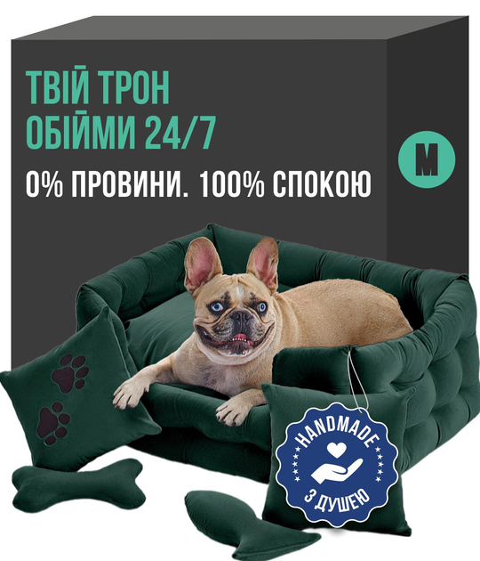 Лежак для собак лежанка для собаки Doggy Affairs ліжко ручної роботи спальне місце М 73х53 см зелений + іграшки в комплекті