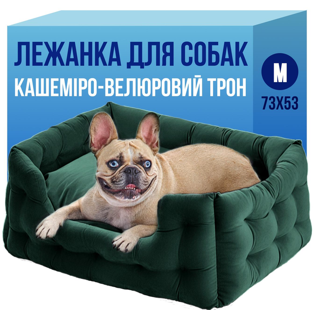 Лежак для собак лежанка для собаки Doggy Affairs ліжко ручної роботи спальне місце М 73х53 см зелений (без подушок)