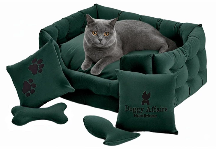 Лежанка для кота лежак для котів Doggy Affairs ліжко для котів ручної роботи спальне місце для улюбленця М 73х53 см зелений