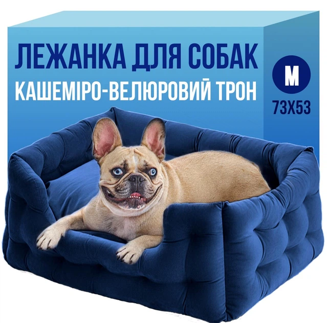 Лежак для собак лежанка для собаки Doggy Affairs ліжко ручної роботи спальне місце М 73х53 см синій + іграшки в комплекті