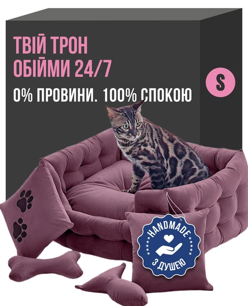 Лежанка для кота лежак для котів Doggy Affairs ліжко для кота спальне місце улюбленця M 73х53 см фіолетова (без подушок)