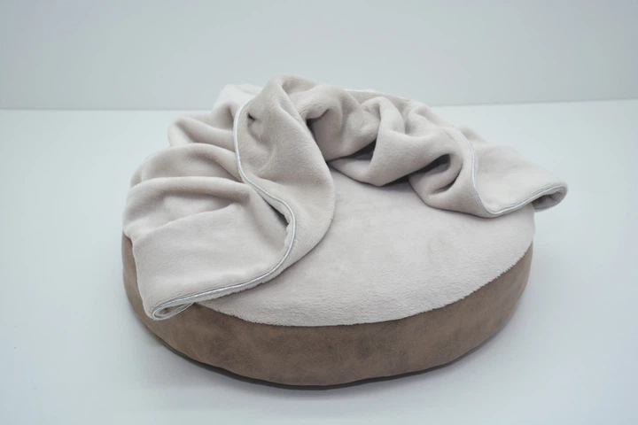 Лежак пуф з ковдрою для собак та котів Замш коричневий №3 580х580х90