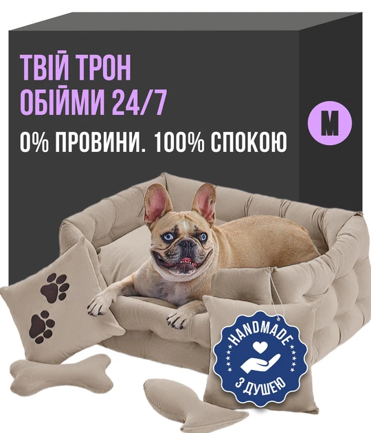 Лежак для собак лежанка для собаки Doggy Affairs ліжко ручної роботи спальне місце для улюбленця М 73х53 см бежевий