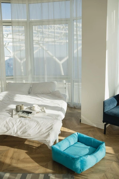 Лежак для собак і кішок з ефектом пам'яті, двосторонній, нековзне дно, блакитний