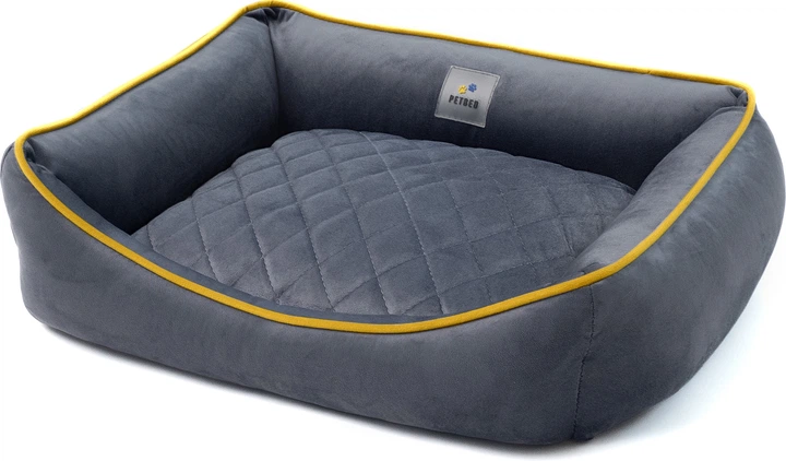 Лежак для собак та котів PETBED Лакі S 60х50 см h-16 см велюр Темно-Сірий кант-жовтий (2211246755014K)