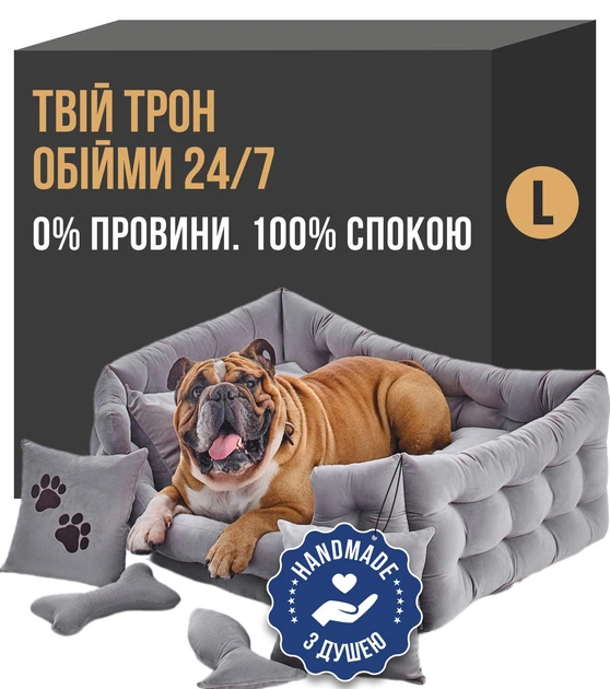 Лежак для собак лежанка для собаки Doggy Affairs ліжко ручної роботи спальне місце для улюбленця L 94х66 см сірий