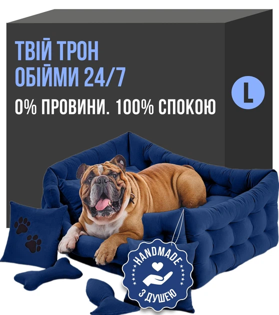 Лежак для собак лежанка для собаки Doggy Affairs ліжко ручної роботи спальне місце для улюбленця L 94х66 см синій