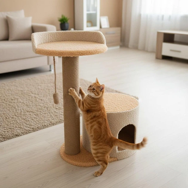 Когтеточка для киценят кішки з будиночком 70 *50 *35 см бежево біла