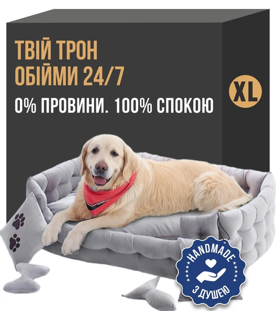 Лежак для собак лежанка для собаки Doggy Affairs ліжко ручної роботи спальне місце для улюбленця ХL 112х70 см сірий