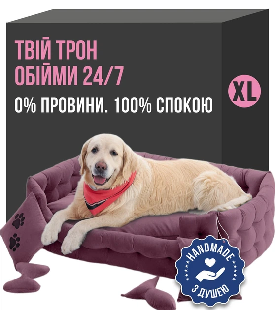Лежак для собак лежанка для собаки Doggy Affairs ліжко ручної роботи спальне місце для улюбленця ХL 112х70 см фіолетовий