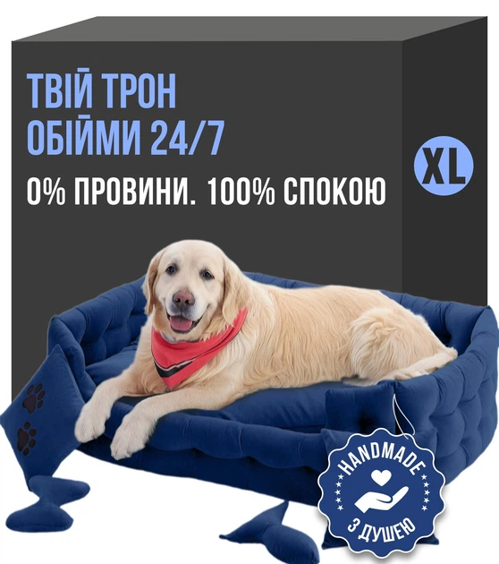 Лежак для собак лежанка для собаки Doggy Affairs ліжко ручної роботи спальне місце для улюбленця ХL 112х70 см синій