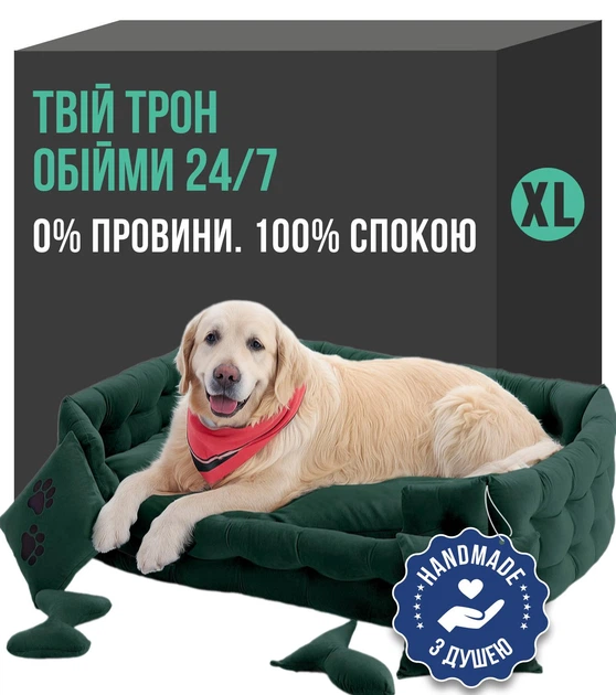 Лежак для собак лежанка для собаки Doggy Affairs ліжко ручної роботи спальне місце для улюбленця ХL 112х70 см зелений