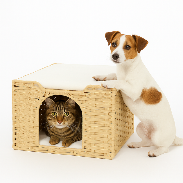 Плетений будиночок Twinea для домашніх тварин з ротанга з двома подушками (P048)