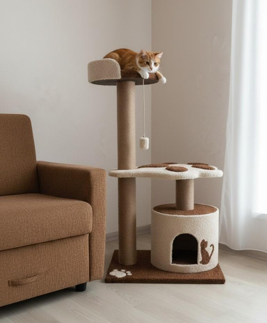 Когтеточка Драпак для кішки котяча лапа з будиночком 106х60х40см коричнево білий