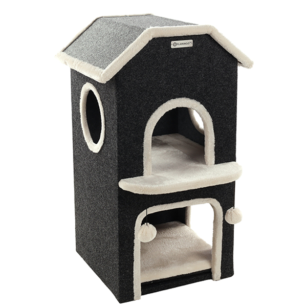 Будиночок для котів Flamingo Nordic Villa каркасний 2 поверхи 48x51x80см, чорно-білий (560334)