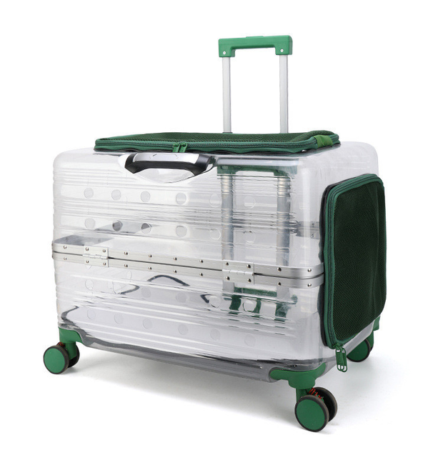 Валізапереноска для тварин на колесах прозора CP-305 Зелений (JDT-0848241)