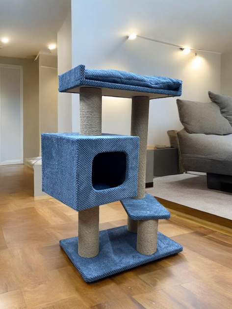 Кігтеточка ігровий комплекс сірий з домівкою, лежанкою та подушкою 95х60х50 см