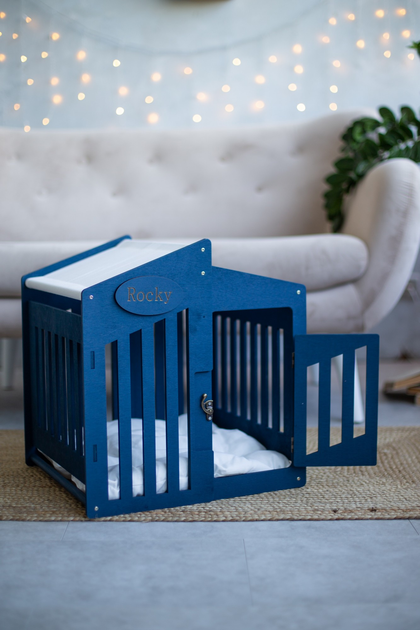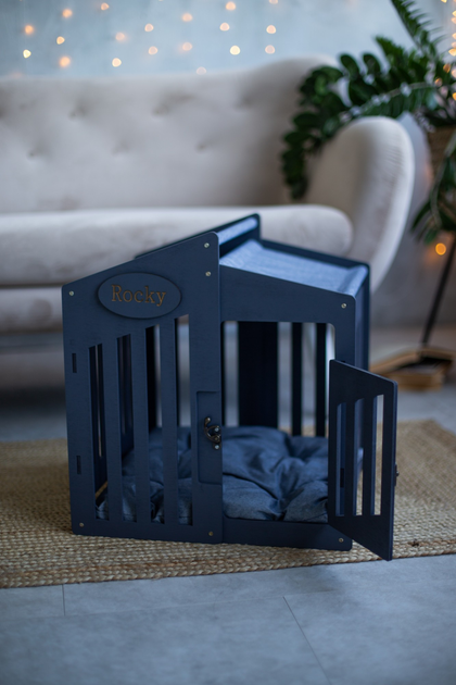 Домик лежак спальное место из дерева для кошек и собак 49х45х42 см серо-синий