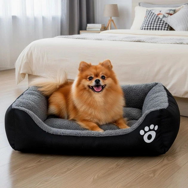 Лежанка пуфик для собак і кішок 55х45см чорний м'яка