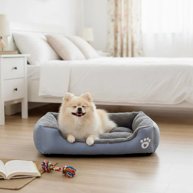 Лежанка-пуфик для собак і котів 55х45см Сірий М'яка лежанка для домашніх тварин
