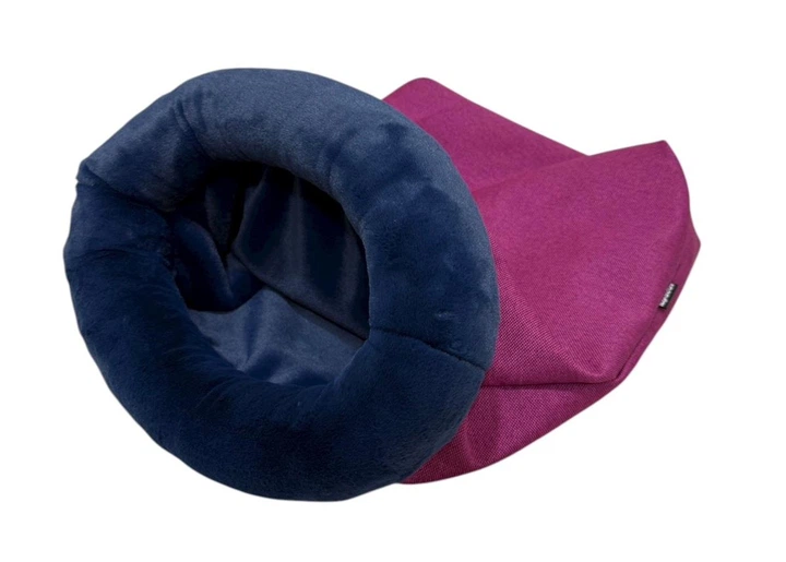 Лежак лежанка ліжко норка кишеня хутряний мішок для котів та собак Рожевий з синім хутром 60 х 45 см