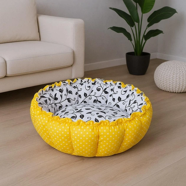Лежанка для кота та собаки «Кошик» жовтий з білим від