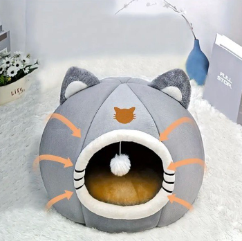 Будиночок лежанка кругла для котів або собачок, розмір М 35 см для тварин до 6 кг Сірий