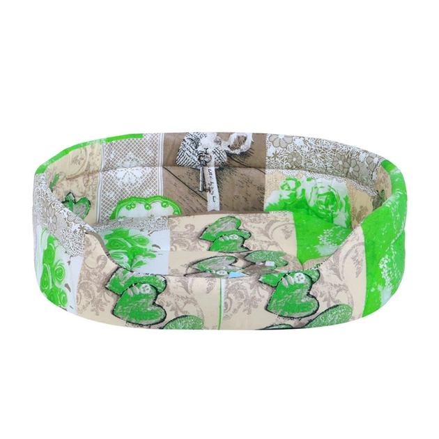 Лежанка для котів і маленьких собак TEREMOK Д-244 №4, зелений принт, бязь, 594917 см — овальний м’який лежак із високими бор