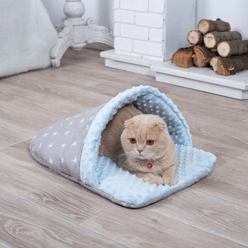 Лежанка для кота та собаки Тапочок сірий з блакитним