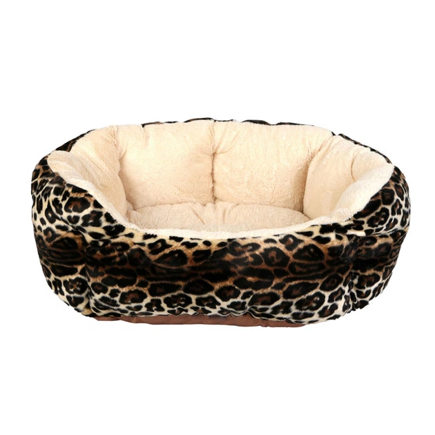 Лежанка хутряна для котів і маленьких собак TEREMOK «Елегант 1» №1, леопардовий/бежевий, штучне хутро, 453515 см — м’який ов