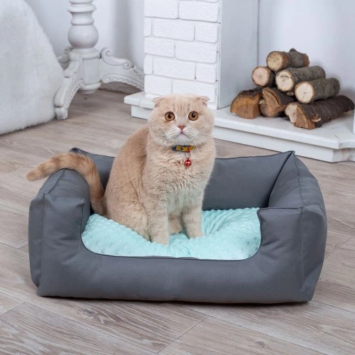 Лежанка для кота та собаки Комфорт сіра з м'ятним S - 60 x 45