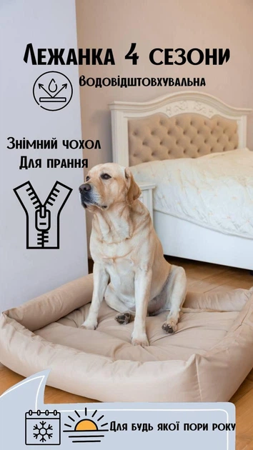 Лежак лежанка 4 сезони | Водостійка, легко чиститься від шерсті, спальне місце для для собак та котів 60х50 Incor Бежевий