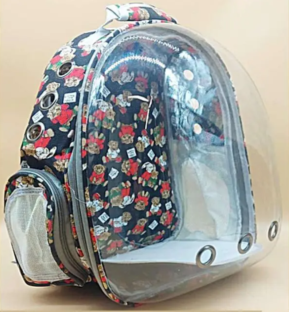 Сумка-рюкзак для тварин "Ведмедики" (чорна) 37x30x20см