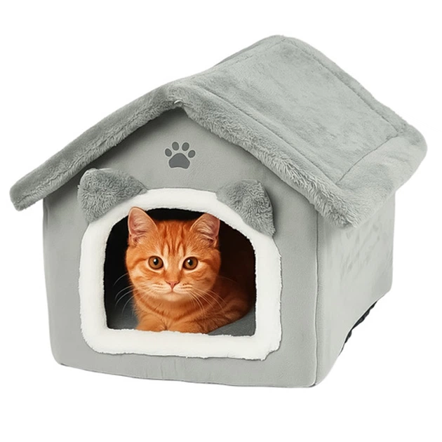 Лежанка будиночок для кішки Purlov 25706 м'яке плюшеве ліжко з подушкою та знімним дахом на блискавці Сірий