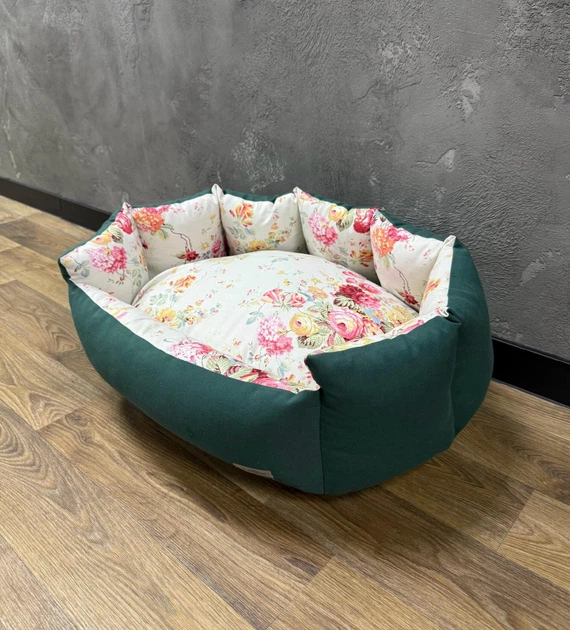Лежак для котів та собак модель 1 Nude flowers coral 120х80 см темно-зелений