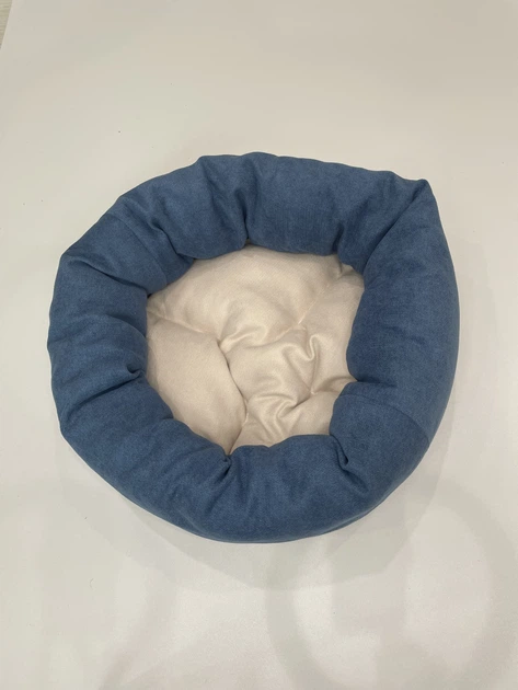 Лежак для котів та собак SKYPUFF 60 см Denim + Ecru