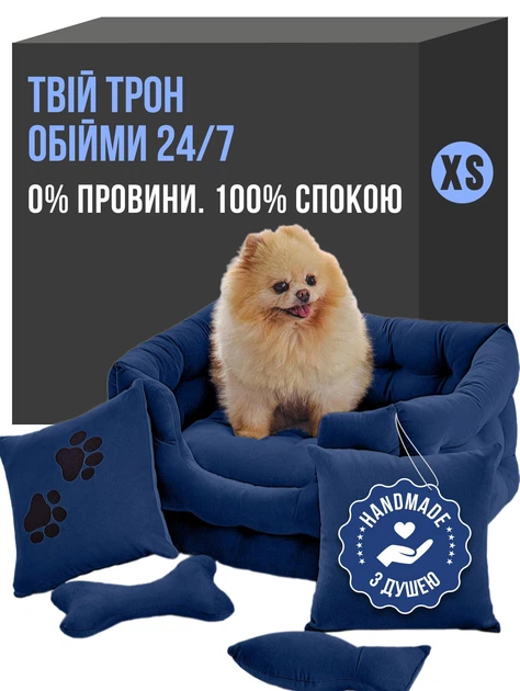 Лежак для собак лежанка для собаки Doggy Affairs ліжко ручної роботи спальне місце XS 53х43 см синій (без подушок)
