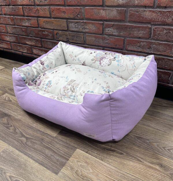 Лежак для котів та собак модель 2 Ashen flowers violet 80х60 см фіолетовий