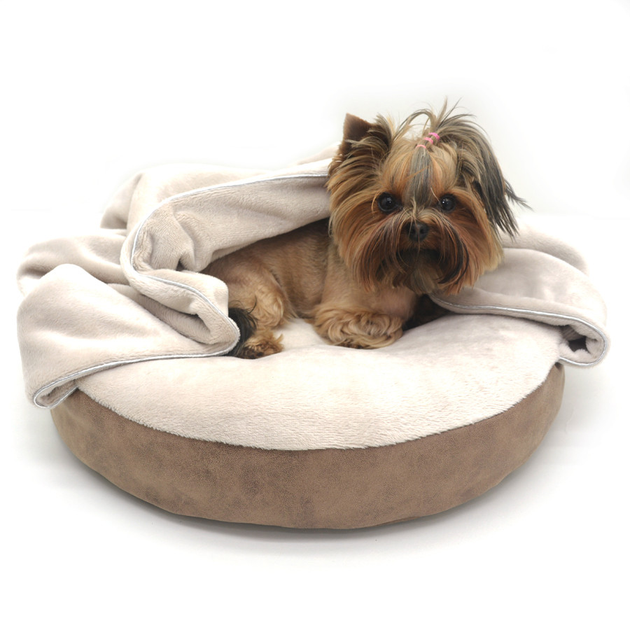 Лежак пуф з ковдрою для собак і котів Айсберг круглий коричневий №2 500х500х90 мм (F67050ED4591)
