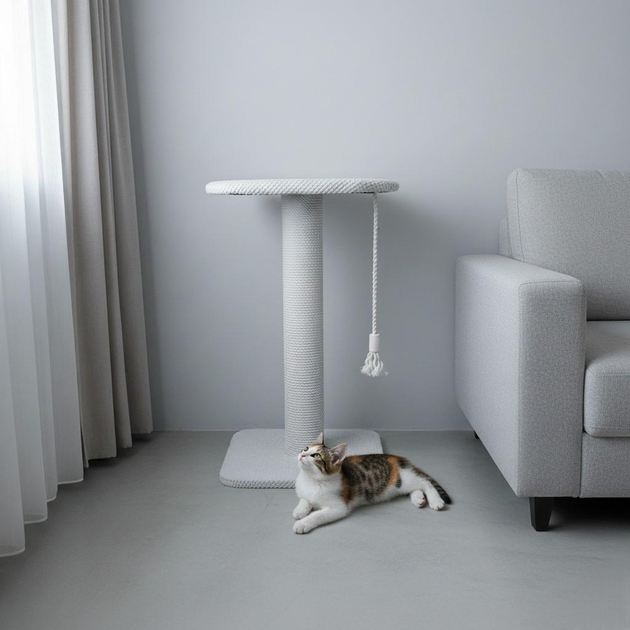 Когтеточка дряпка стовпчик з лежанкою для кішок в бавовняному канаті 75см молоко