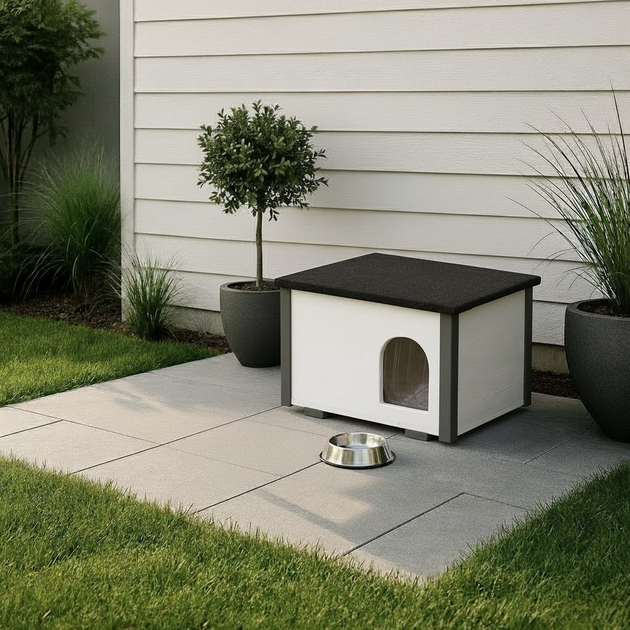 Дерев'яна будка для собаки з відкривним дахом Біла
