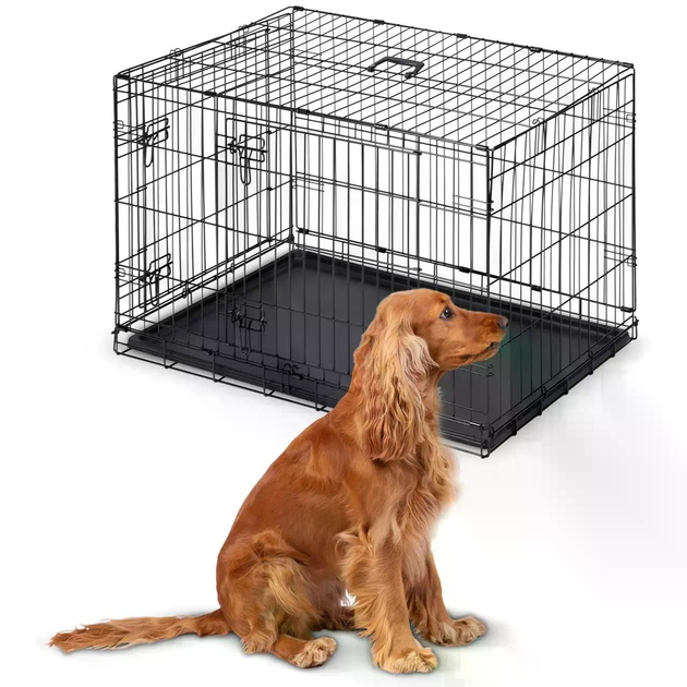 Клітка для транспортування собак та котів 108x70x77 см металева з піддоном Чорна