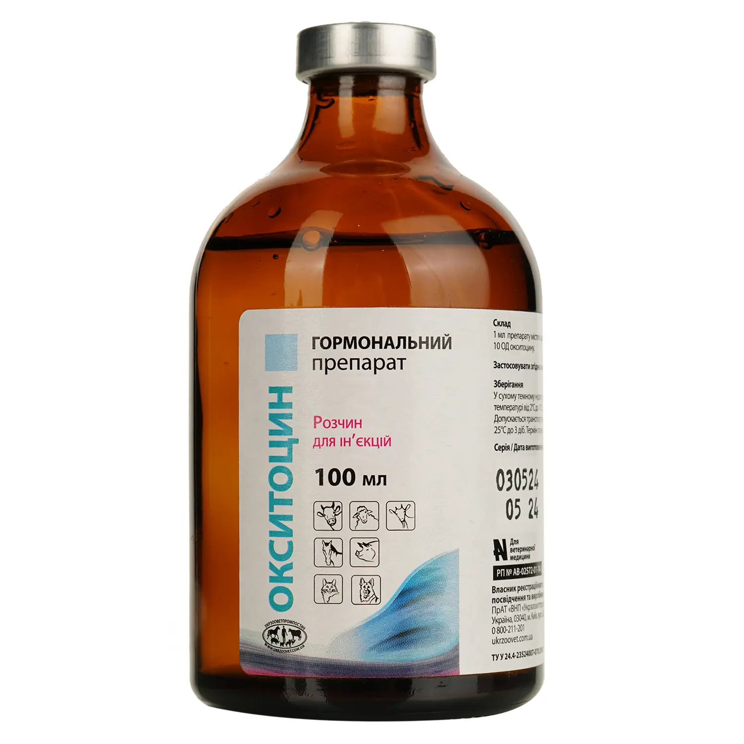 Гормональний препарат Укрзооветпромпостач Окситоцин розчин для ін’єкцій 10 ОД 100 мл