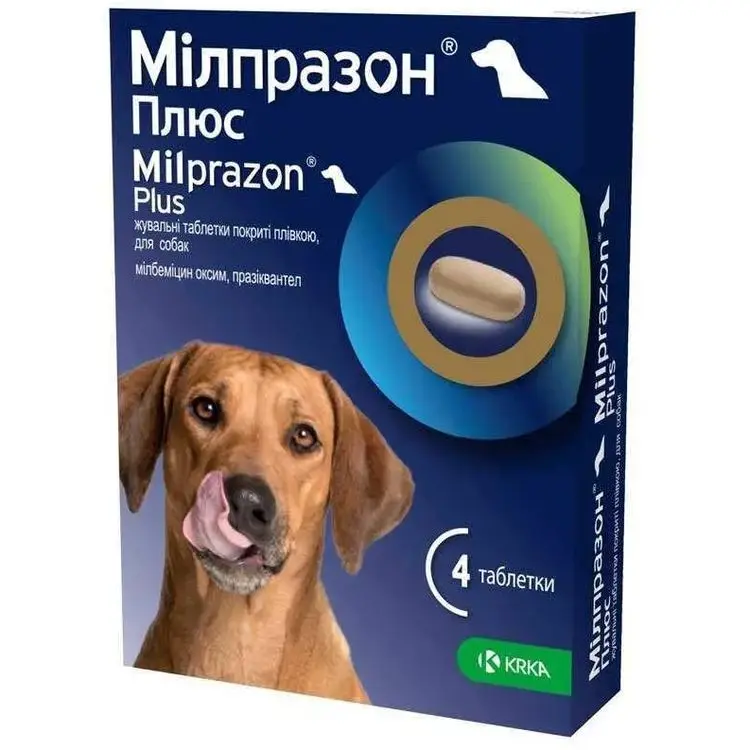 Мілпразон Плюс жувальний KRKA собаки від 5 кг 12.5 мг/125 мг №4 таблетки блістер (KRK28203)