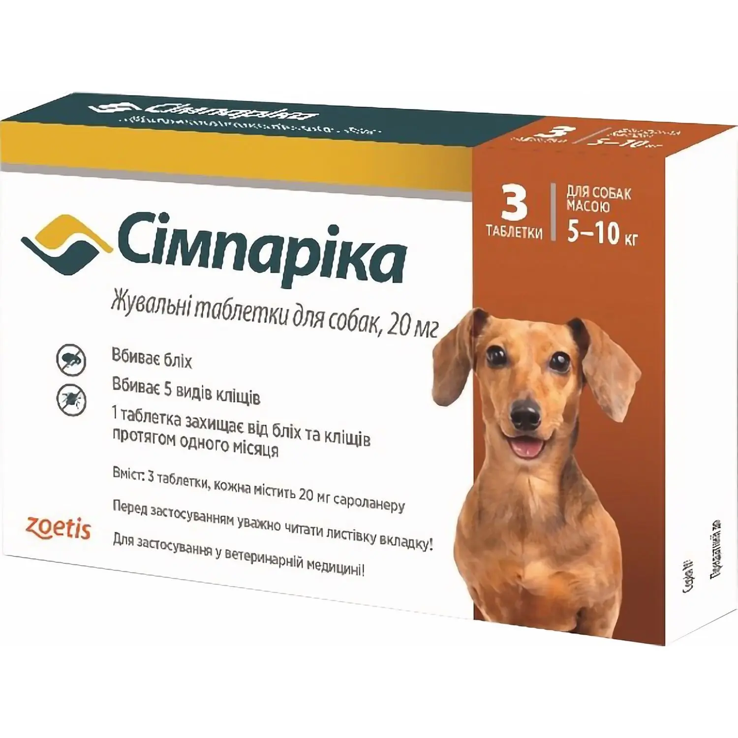 Жувальні пігулки Сімпаріка для собак вагою 5-10 кг 60 мг (20 мг x 3 пігулки) (10022531)